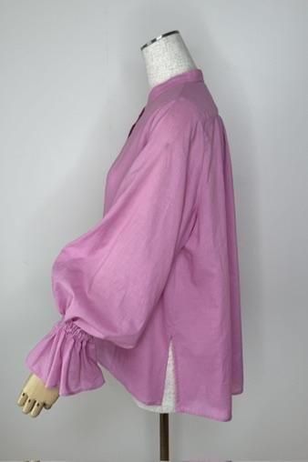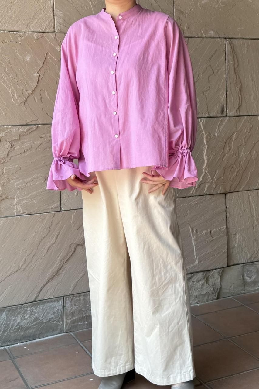 バラの美しい色合いで染め上げた、華やかな印象のシャツです。オーガニックギザコットンを使用しており、極薄のエジプト綿(GIZA)は肌触りがとても柔らかく、通気性も抜群です。ボタニカル染めによる鮮やかなバラの色が日々の気分を上げてくれます。袖口にはゴムが施されており、袖丈を自在に調整可能。ふんわりとしたシルエットを演出し、リラックスした着心地を提供します。フロントの貝ボタンもアクセントになっており、自然の素材を大切にしたデザインが特徴です。